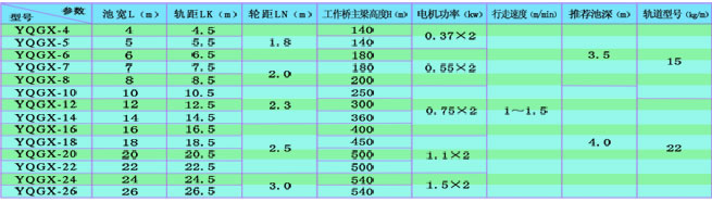YQGX型桥式刮吸泥机适用于城镇污水处理厂矩形二次沉淀池及自来水厂的平流式沉淀池的吸排泥,根据用户要求,可增设撇油、撇渣装置。