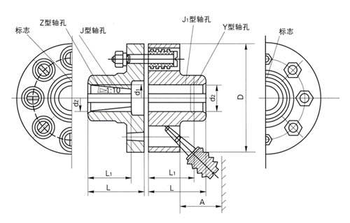 轴孔直径 d1/mm d2/mm dzmm |
