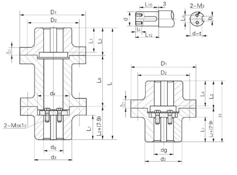 最高转速 | δ1 | M3*l3 | D2 | D2 | d3 | d4 | L | L0 | L1 | L2 | L10 | L12 | L4 | b | t | 重量kg | ||||||