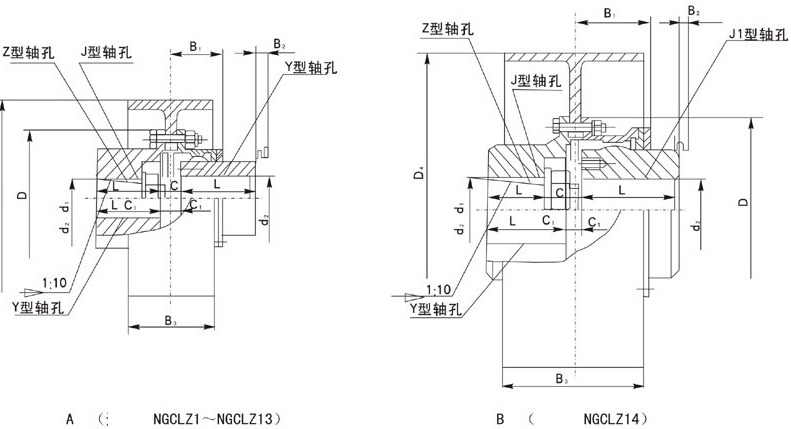 NGCLZ型鼓形齿式联轴器基本参数和主要尺寸